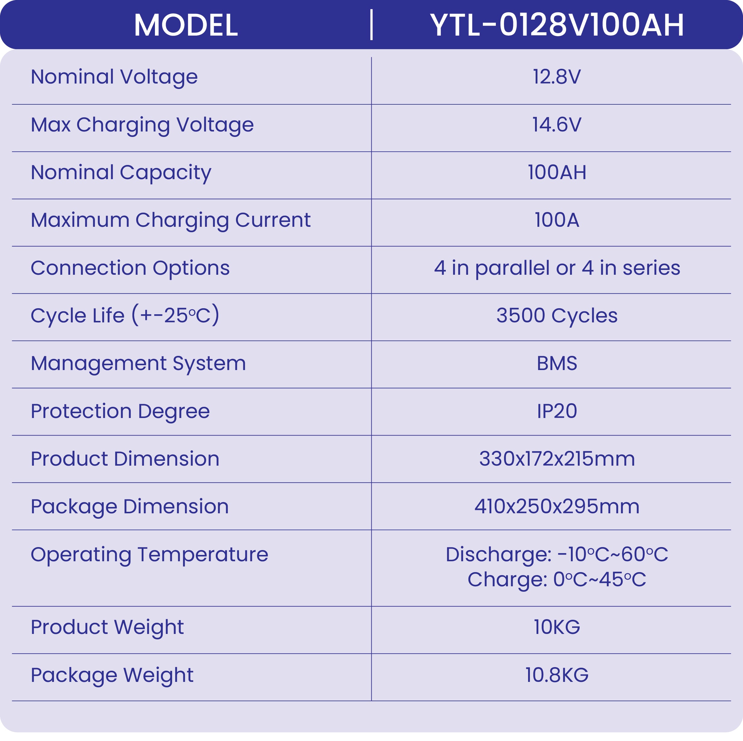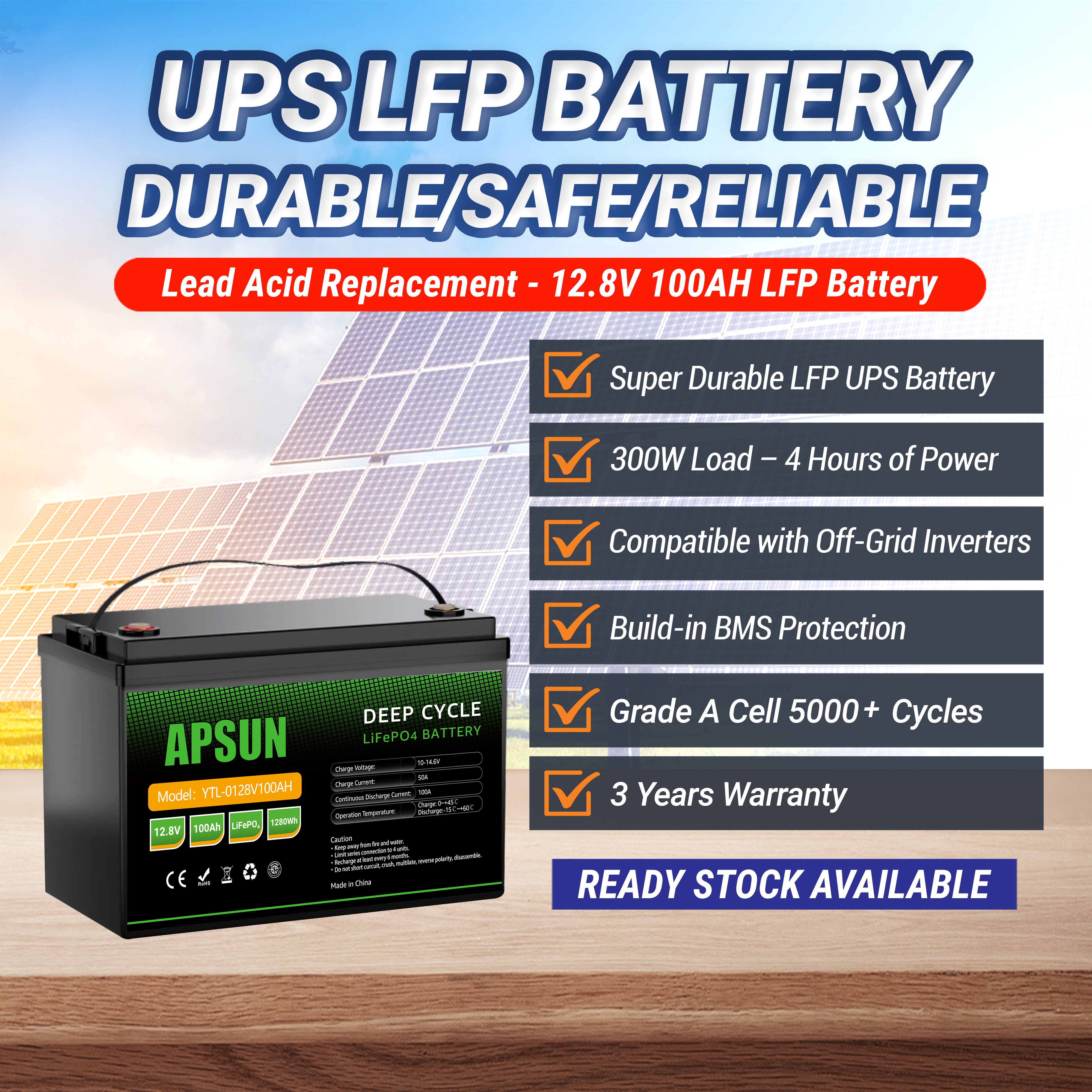 Upgrade your power storage with the APSUN YTL-0128V100AH LiFePO₄ Battery — designed for longer life, higher performance, and superior safety. Ideal for solar systems, backup solutions, and all high-demand applications.
